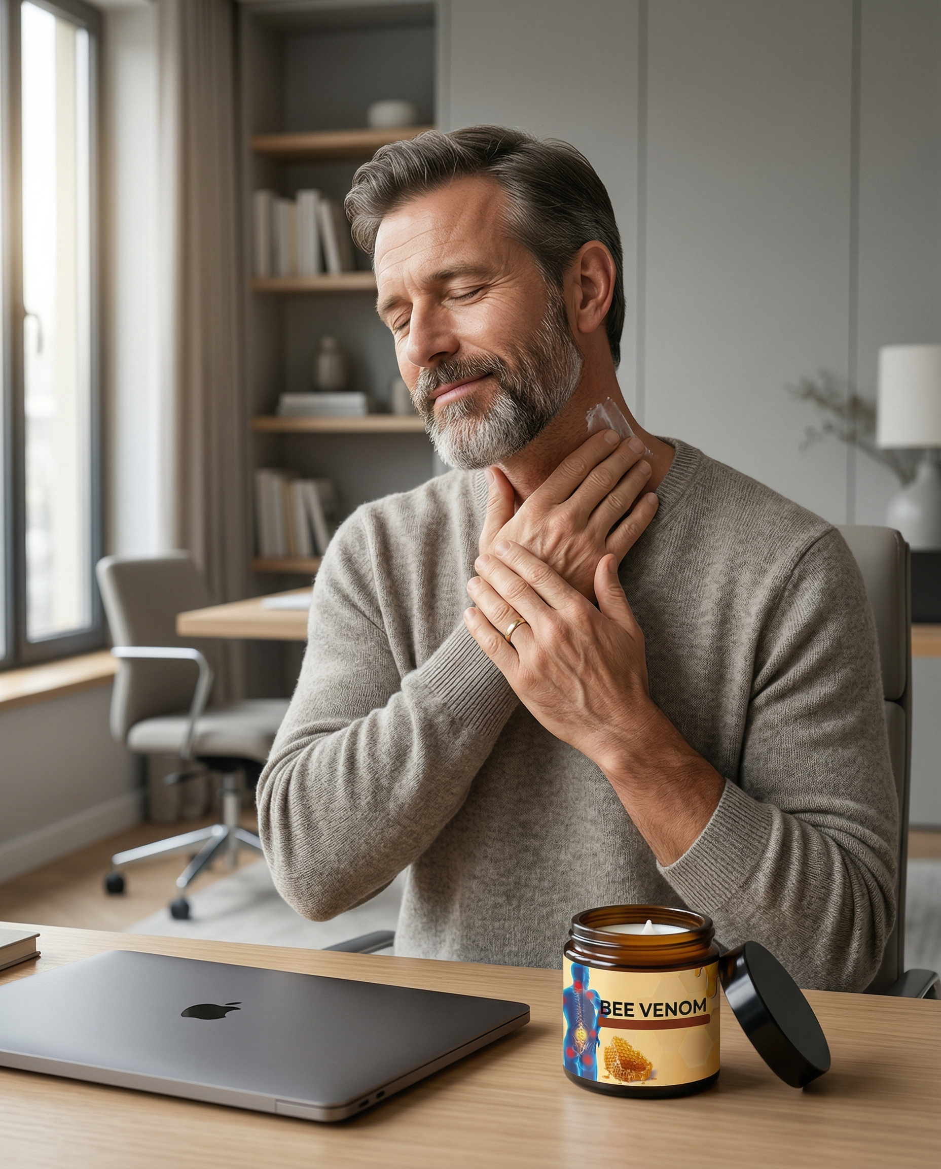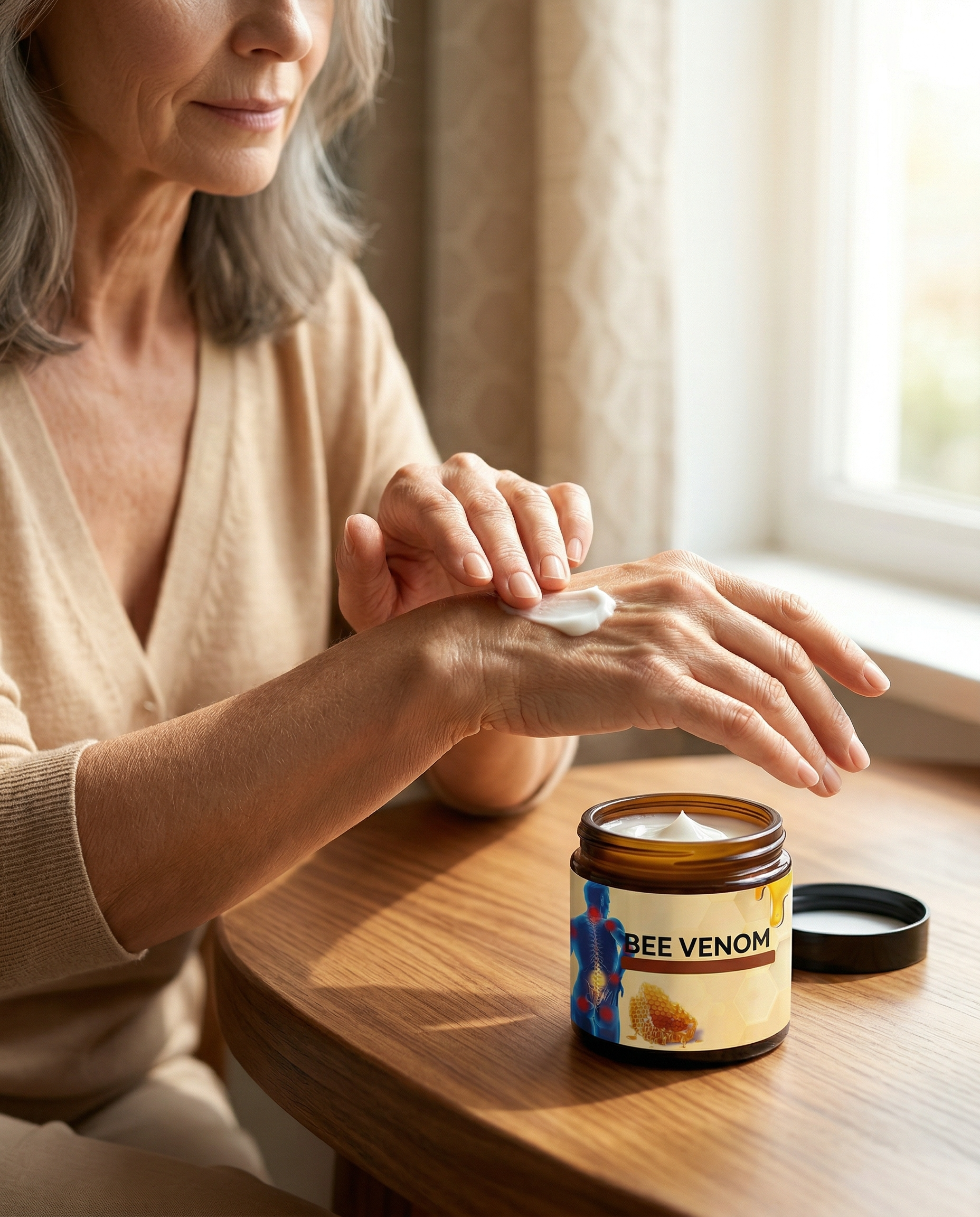 Recomendamos hacer una prueba en una zona pequeña del antebrazo 24 horas antes del primer uso. Si notas enrojecimiento persistente o irritación, no la uses. Esta crema contiene veneno de abeja en concentraciones bajas: no es apta para personas alérgicas a picaduras de abeja ni a productos apícolas.